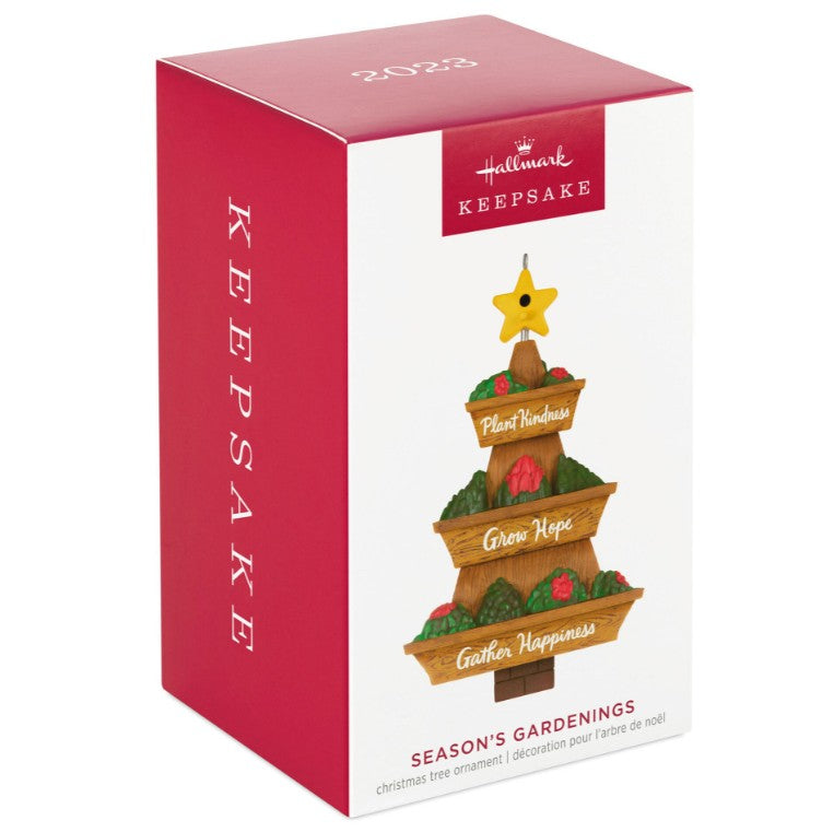 Season's Gardenings Kindness Tree Ornament. Grow joy with this tree-shaped planter that reads “Plant kindness. Grow hope. Gather happiness.” A heartfelt holiday message!