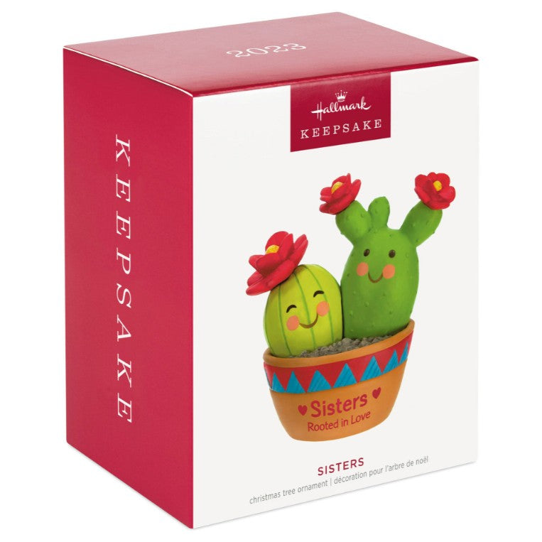 Sisters Rooted in Love Cactus Ornament. Honor the bond (prickles and all) with two potted cacti. “Sisters rooted in love”—perfect for siblings!