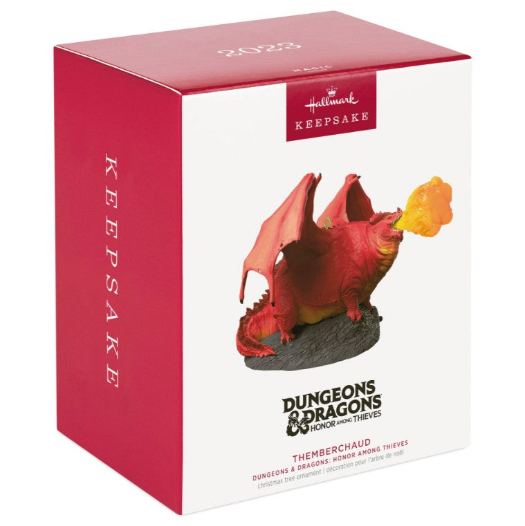 Themberchaud D&D Dragon Ornament. Fiery red dragon soars from Honor Among Thieves—epic gaming beast!