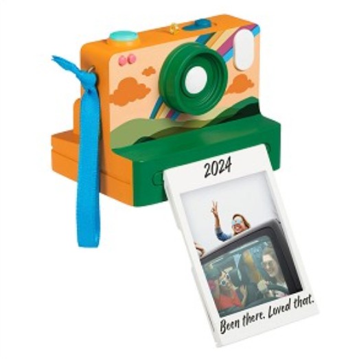 Relive your favorite memories with this instant camera photo holder ornament. Insert your 2024 vacation or milestone photo, add a custom caption, and hang nostalgia on your tree. Perfect for travelers, besties, and memory keepers—2024 Hallmark Keepsake.