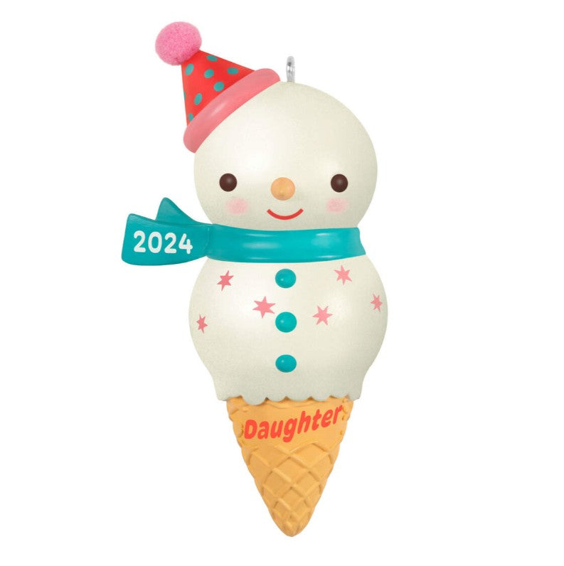"To My Daughter, Love Always" — This sweet snowman wears a 2024-dated charm and proudly displays “Daughter” in elegant script. A 2024 Hallmark Keepsake that says "You melt my heart" — perfect for dads, moms, and family trees filled with love.