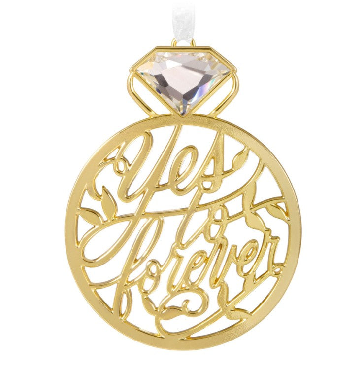 "Yes" forever! Intertwined rings photo holder with "Our Engagement 2024" message — metal, artist-crafted. A 2024 Keepsake for fiancées, proposal flashbacks, and ring selfie memories.